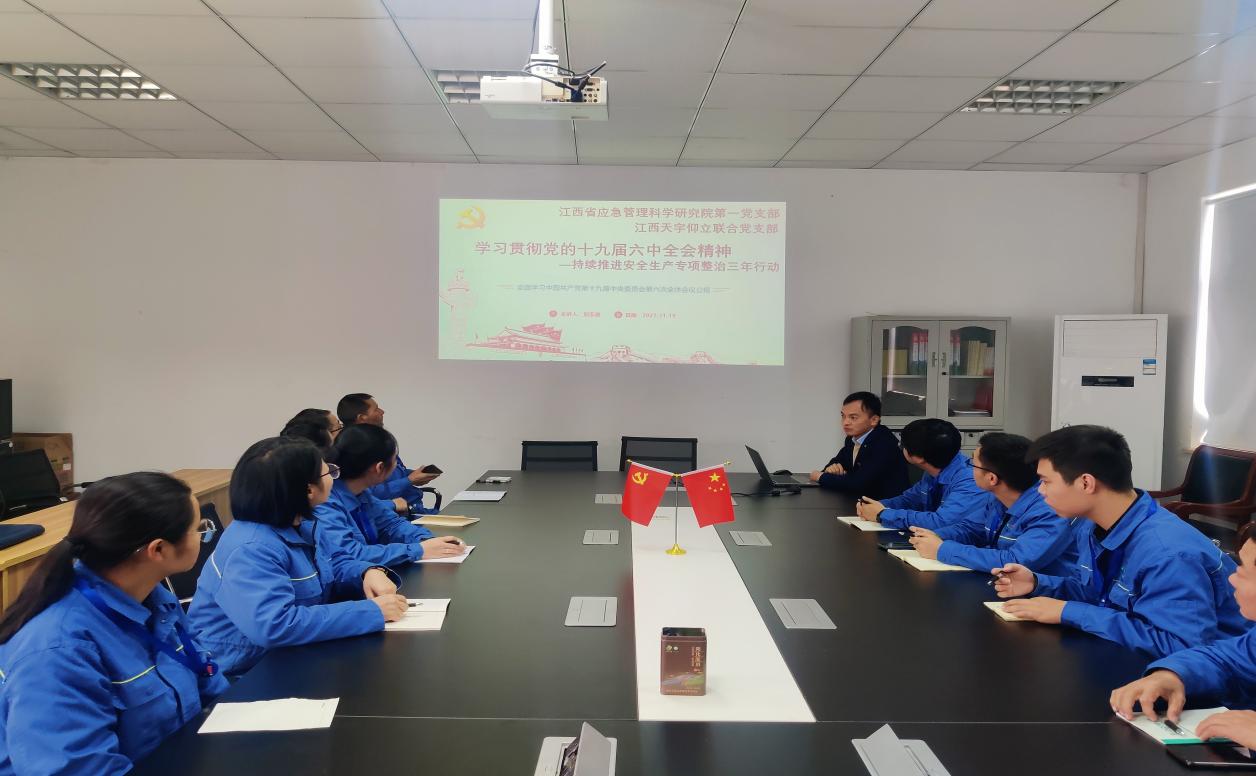 11月19日下午,根据学习贯彻党的十九届六中全会精神统一部署和我为群众办实事系列活动安排,科学院第一党支部来到江西天宇化工有限公司,以“学习贯彻党的十九届六中全会精神,持续推进安全生产专项整治三年行动”为主题,为江西天宇仰立联合党支部全体党员宣讲了党的十九届六中全会精神,新干县应急局部分党员干部及天宇化工全体党员共同参与学习。