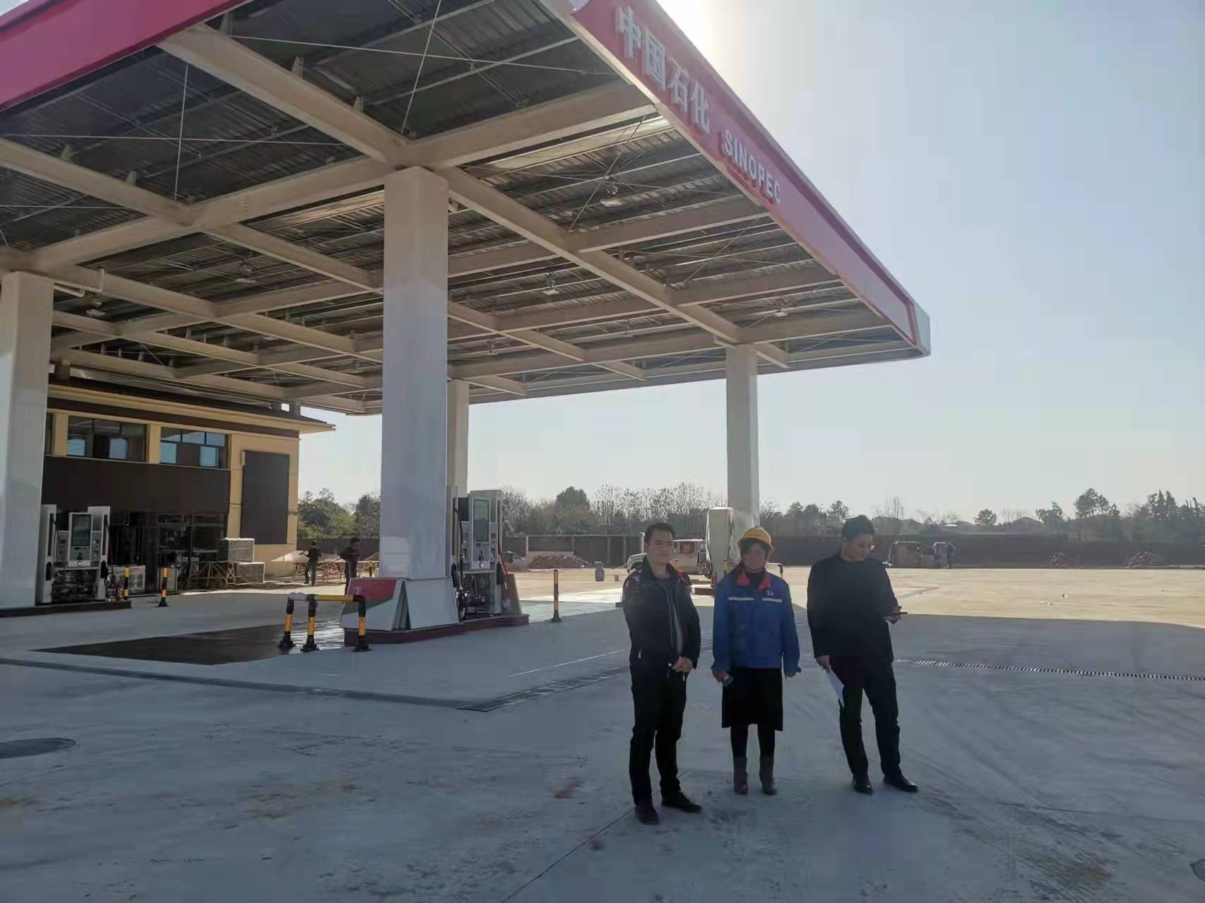左边项目负责人贺飞虎,中间站内加油人员,右边评价人员廖继东
