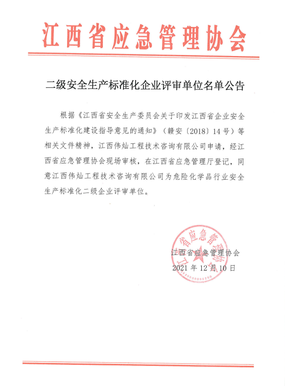 安全生产标准化二级评审单位(危险化学品)文件批复