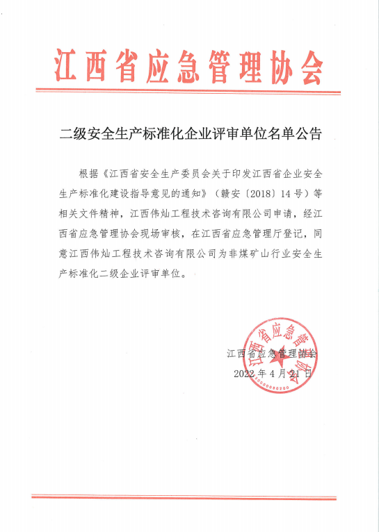 安全生产标准化二级评审单位(非煤矿山)文件批复